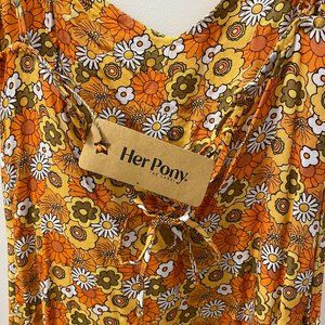 Her Pony the Label Size 8 in Australian sizing… typically translates to around a 4 in US! Short floral slip dress with floral pattern. Never worn new with tags