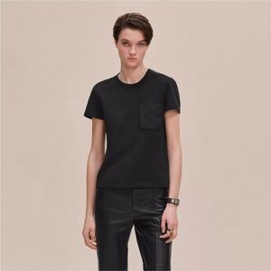 NWT Hermes Embroidered pocket t-shirt Short Sleeve Tee Shirt Black US 6 S