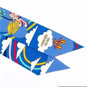 NWT Hermes le Carres Volantes silk twilly ribbon scarf Blue White Yellow