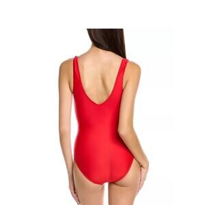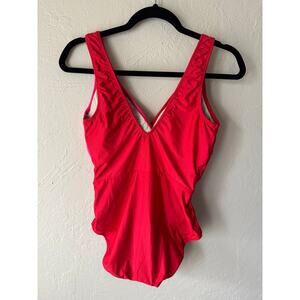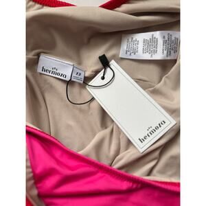 NWT Hermoza Pink and Red Color Block V-Neck One Piece Swimsuit Size 12