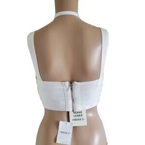 NWT Hervé Léger x Forever 21 White Strappy Bandage Crop Top (M). Some dust smudges that should come out in wash or when spot cleaned. Makeup on interior. Can't see from exterior.