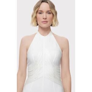 NWT Herve Leger Draped Waist Halter Fringe Gown Alabaster Women's Size Medium