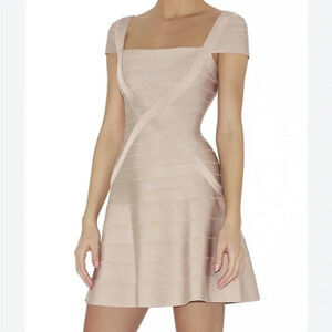 NWT Herve Leger Makayla Dress Rare Beige Nude Bandage XS NEW Mini