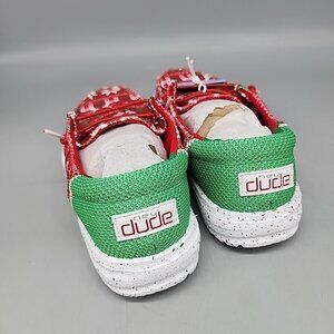The NWT Hey Dude Wendy Youth Jolly Jingle Slip on Lightweight Loafers in size Y1 - L2 are perfect for children who love the festive jolly jingle theme, especially during the holidays. These multicolor loafers feature a low top design, slip-on closure, and a flat heel for all-day comfort. With their lightweight construction and standard shoe width, these loafers are ideal for casual occasions and add a touch of Christmas cheer to any outfit. Made from fabric, these unisex kids' shoes are both stylish and practical for everyday wear.