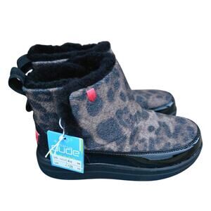 NWT Hey Dudes Mel Leo Black Lepoard Print Boots Youth 4 Ladies 5 Fur Liner snow