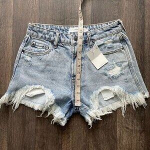 Blue Hidden distressed denim shorts. A beautiful mom fit pair of shorts. No stretch.