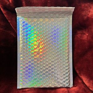 New in its original packaging! High quality bubble mailers in a holographic color. This is a 10 pack and the mailers are approximately 7” x 9” with a 1 inch slab.