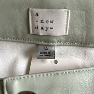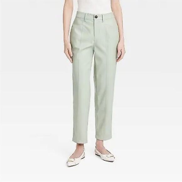 NWT High Rise Faux Leather Ankle Trousers Pants A New Day Sage Green Size 14