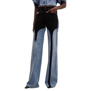 NWT High Rise Wide Leg Contrasting Panel Jeans Blue Black Small 90’s Y2K Grunge