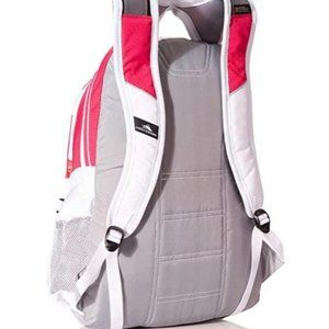 HIGH QUALITY & BRAND NEW! High Sierra Tech Spot Elite extra large back pack waterproof, heavy duty, but lightweight punch / pink & white with gray ash detailing. PERFECT travel or commuting hiking essential wear with jeans, shorts, suit, business dress or casual, cycling, biking, backpacking, yoga pants, Y2K unisex look. Waterproof. Main compartment + secondary pockets with tablet sleeve / organization + 2 accessory pockets. The Suspension System provides relief when carrying heavier loads. It does so by dampening the shock of weight transfer while transporting your gear. A dedicated sleeve for your tablet or laptop. Compression straps are designed to cinch down and secure gear while carrying. For School, Travel or Work Book bag with tablet sleeve. ALL YOU NEED in a back pack. No stains, smells, wear. Smoke free. Lifetime Limited warranty. MSRP: $225, plus tax.