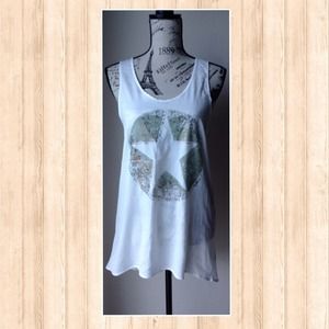 New - High-Low Racerback Tank with Star. Green and shiny gold detail. 17" Underarm to Underarm - 19" (front) Underarm to Hem - 23" (back) Underarm to Hem.