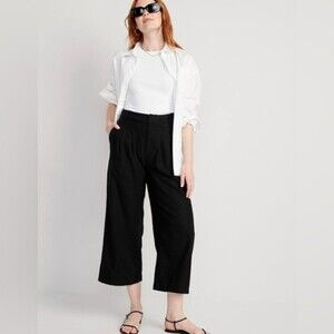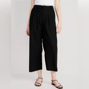 NWT! High-Waisted Linen-Blend Cropped Wide-Leg Pants - Medium Tall 💎