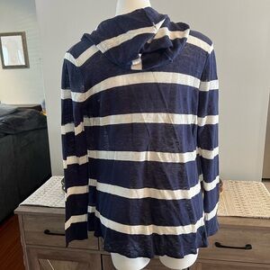 NWT Hiho 100% Linen Blue and white striped hooded open front cardigan