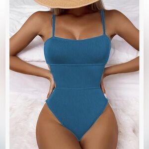 NWT Hilinker Women's Ribbed One Piece Swimwear Cutout Tummy Control Bathing Suit
