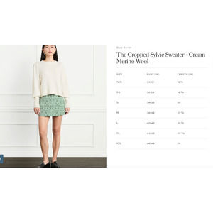 NWT Hill House The Cropped Sylvie Sweater Ivory 100% extra-fine merino wool