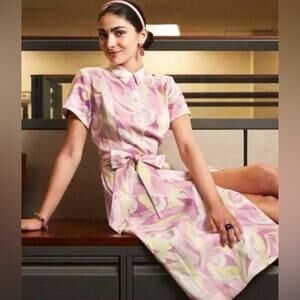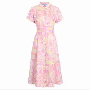 NWT Hill House The Lily Candy Kaleidoscope pink Linen Midi Dress size XXS