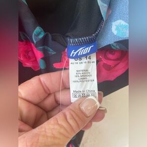 NWT Hilor Black / Pink Floral One Shoulder One Piece Swimsuit Women’s; size 14