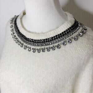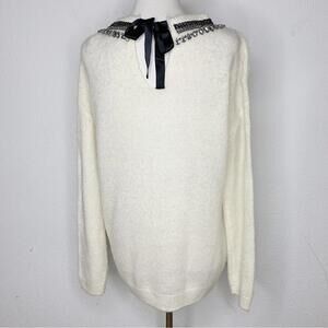 NWT Hinge Wool Blend Ivory Crewneck Knit Sweater with Self Tie Neck Size S