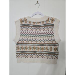 This great little cropped vest is perfect for all seasons. It is V-Neck, off white w/fall colors and super soft material.