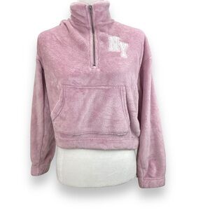 NWT Hippie Rose Juniors' Super Soft Quarter-Zip Pullover NY Sweatshirt pink S