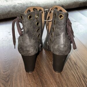 Never worn open toe side zip adorable shooties metal and lace up accents washed look