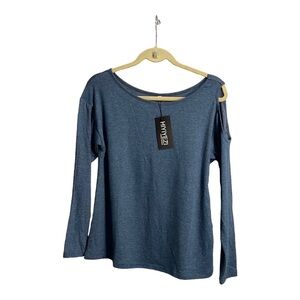Style: Long sleeve, boat neck top with cold shoulder detail. Can be worn off shoulder for added style