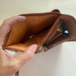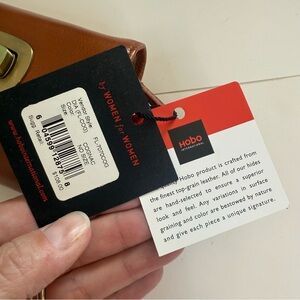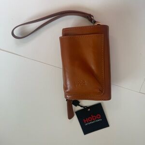 NWT Hobo Cognac Brown Leather Green Kiss Lock Trifold Wallet Case Wristlet Purse