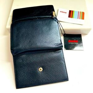 Sleek black leather wallet by Hobo. Compact and stylish design.