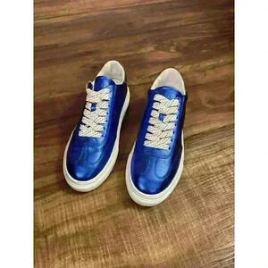 NWT Hogan Soft Leather Blue laminated effect Sz 35 / US Size 5