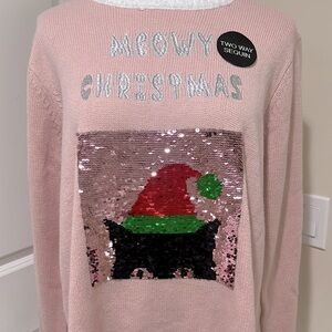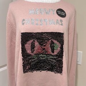 NWT Holiday Time Meowy Christmas Pink Interchangeable Sequin Cat Sweater XL