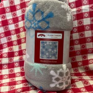 Brand new in packaging winter themed snow flake super soft plush throw. Perfect to go along with cool tone decor all winter long!