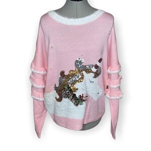 NWT Holiday Time pink unicorn Christmas Sweater size XL