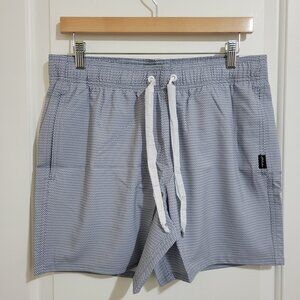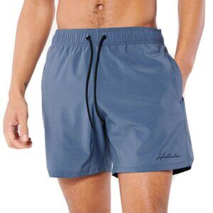 Brand new with tags Hollister swim trunks, still in original packaging. Four-way stretch fabric for added comfort, drawstring at the waist, 5" inseam. Blue-gray micro pattern over white. Soft shell fabric, mesh lining. The model pic displays the fit, not actual color.