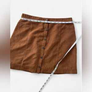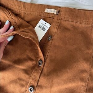 This New With Tags Hollister mini skirt is a wardrobe staple in a rich cinnamon brown shade. Flattering A-line shape with a full button-front adds a vintage-inspired edge that’s perfect for fall or year-round layering.