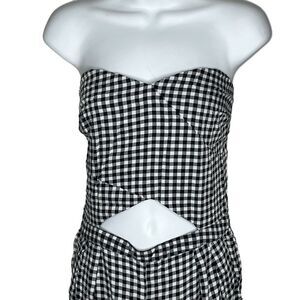 NWT Hollister Size Large Jumpsuit 100% Viscose Strapless Pockets Cutout Black & White Gingham