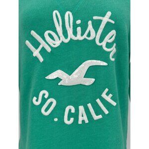 NWOT Hollister Seafoam Green Slouchy Embroidered Logo & Sequins 3/4 Sleeve Sweater