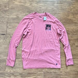 NWT Hollister Tee T-Shirt Graphic Long Sleeve Palm Tree in Pink. Men's Size M. 51% cotton, 49% polyester.