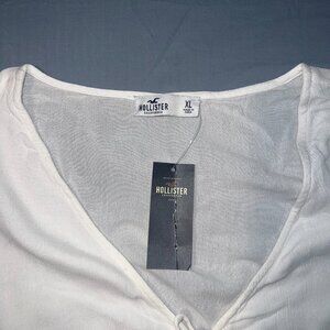 NWT Hollister White Long Sleeve V-Neck Tie Front Shirt