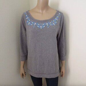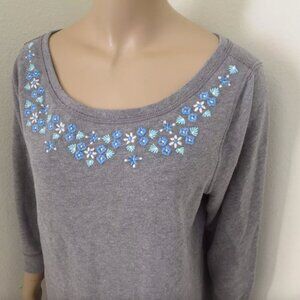 Gorgeous Hollister Womens Embroidered Gray 3/4 Sleeve Sweater Size Large!