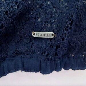 NWT Hollister Womens Lace Top Size Medium Shirt Blouse 3/4 Sleeve Navy Blue
