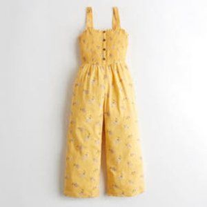 NWT Hollister Yellow Floral Crop Wide-Leg Linen Blend Jumpsuit - Size Medium