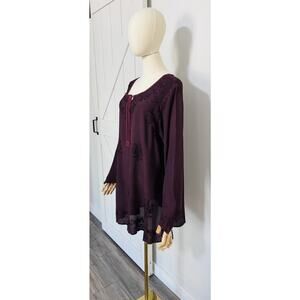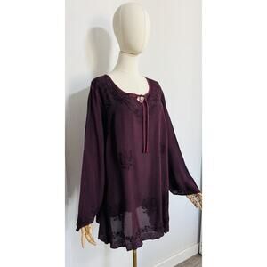 NWT Holy Clothing Size XL/1X Tunic Top Maroon Embroidered Boho Renaissance