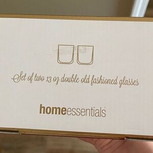 NWT Home Essentials Set of Two Double Old Fashioned Christmas Glasses
