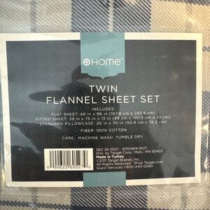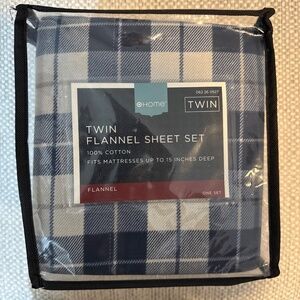 NWT Home Target 100% Cotton Plaid Heavyweight Flannel Twin Sheet Set in Blue