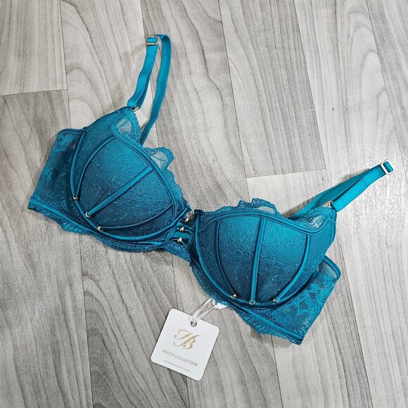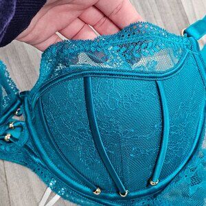 NWT Honey Birdette Jade Azure Teal Push Up Demi Bra Size 36D
