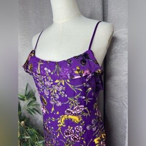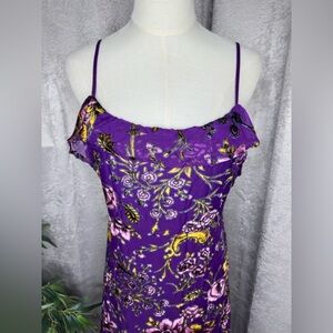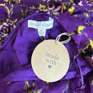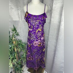 NWT Honey Punch Violet Velvet Floral Ruffle Cold Shoulder Midi Dress Sz M
