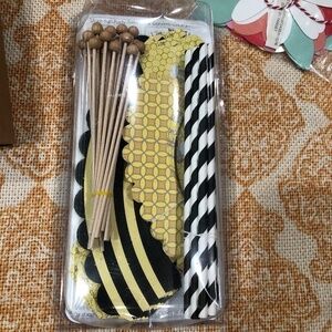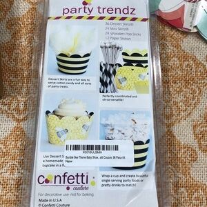 - 1 Confetti Couture Party Trends pack in Bumble Bee Theme Baby Shower cupcakes and treats. includes 36 dessert skirtz, 24 mini skirtz, 24 wooden pop sticks, 12 paper straws