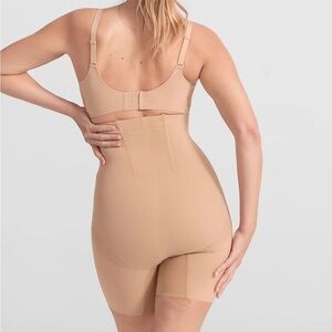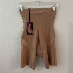 These shapewear shorts feature a patented design that offers targeted compression right where you want it. Doubleknit panels sculpt without squeezing. Flexible boning hidden in the side seams prevents roll-down and accentuates your waist. With a 6 3/4" inseam, these shorts offer full thigh shaping. An opening in the gusset makes bathroom trips a breeze.