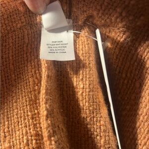 NWT Hooded Poncho Kimono coastal Beachey open raw hem fringe OS rust orange