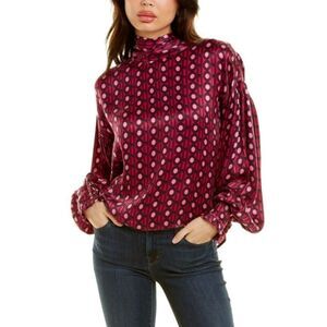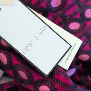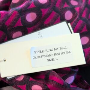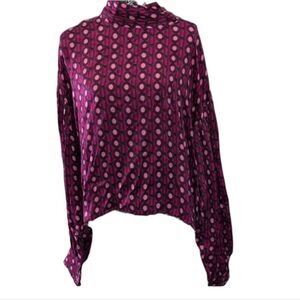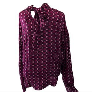 New with tag Host & Var Ring My Bell Long Sleeve Blouse Studio Dot Print Hot Pink Fuchsia purple Satin. Ties at back of neck. Size L please see measurements pictures to be sure of fit. Retail: $216